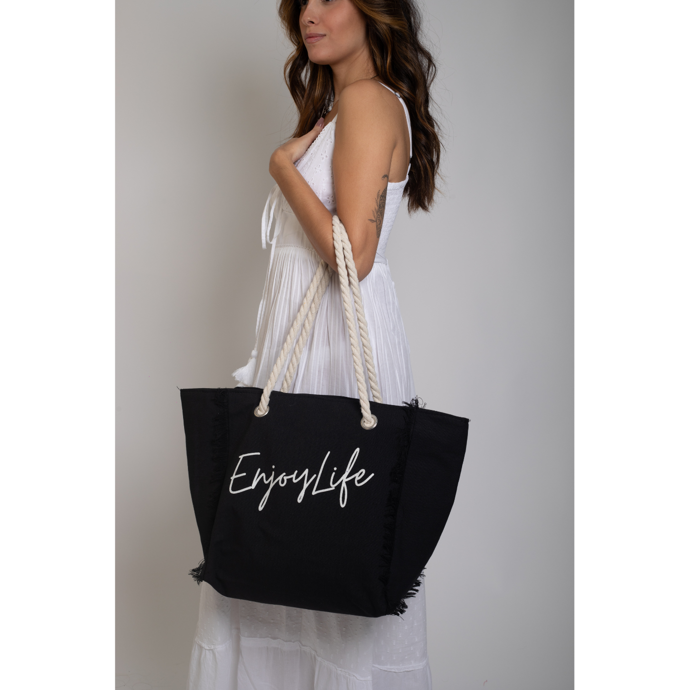 Bolsa em Lona Preta Enjoy Life 100% Algodão