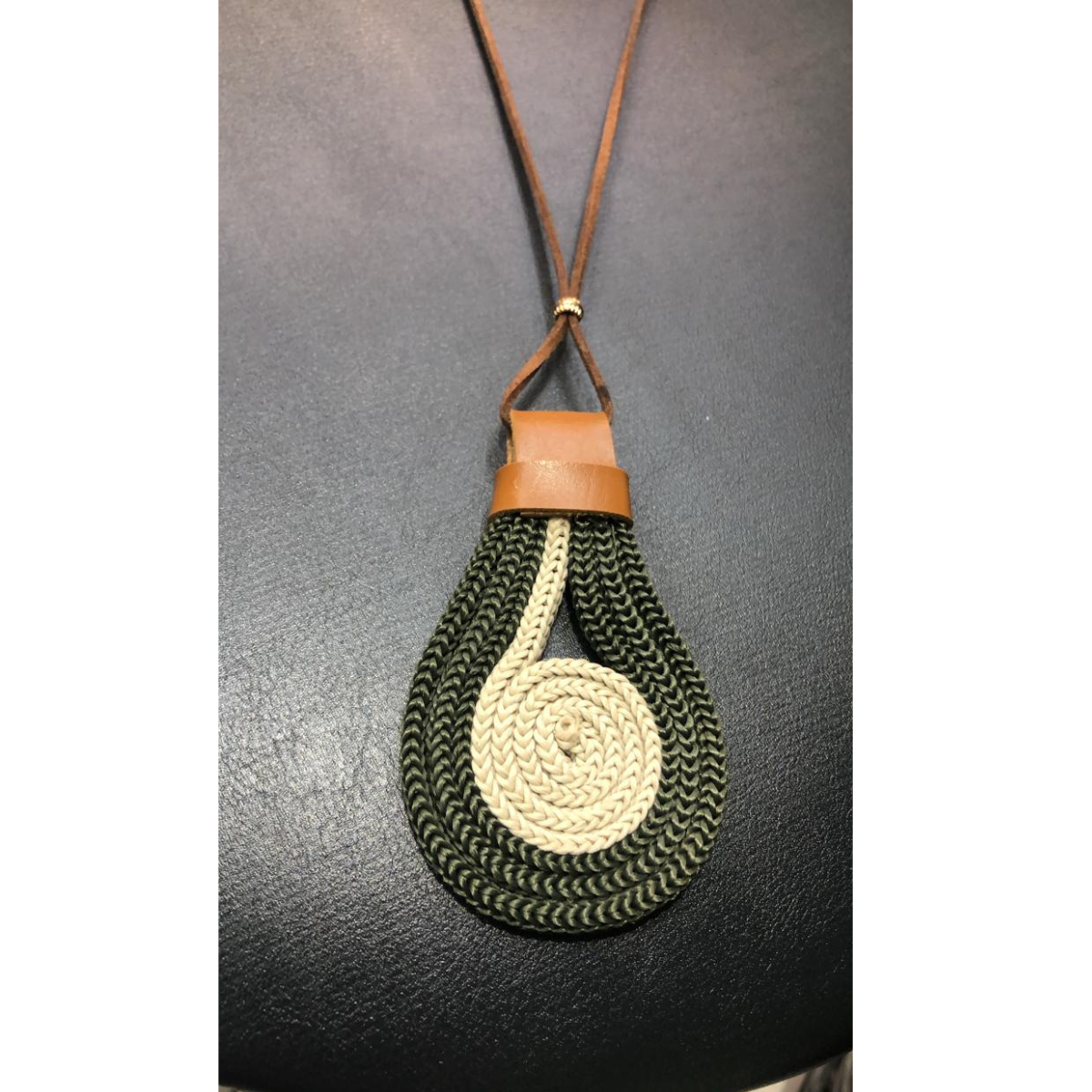 Colar Longo Ajustável em Couro Ecológico - Gota Verde_Off White