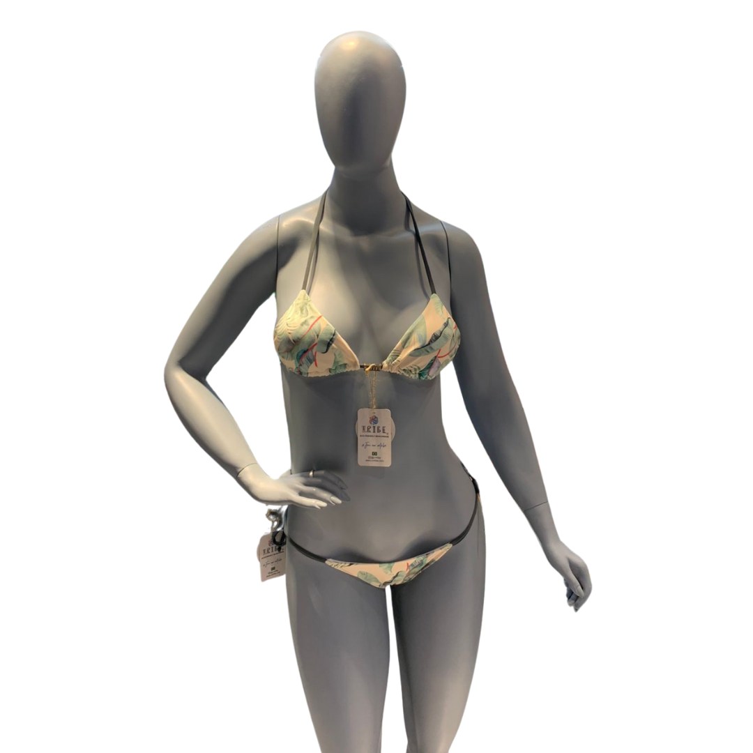 Garante durabilidade, resistência ao cloro e propriedades antibacterianas, proporcionando maior segurança e higiene. Além disso, o Top Biquíni Folhas Fundo Claro Cortininha com Bojo Removível é isento de produtos tóxicos, com certificação internacional Oeko-Tex 100 Classe I, assegurando cuidado e conforto para sua pele.