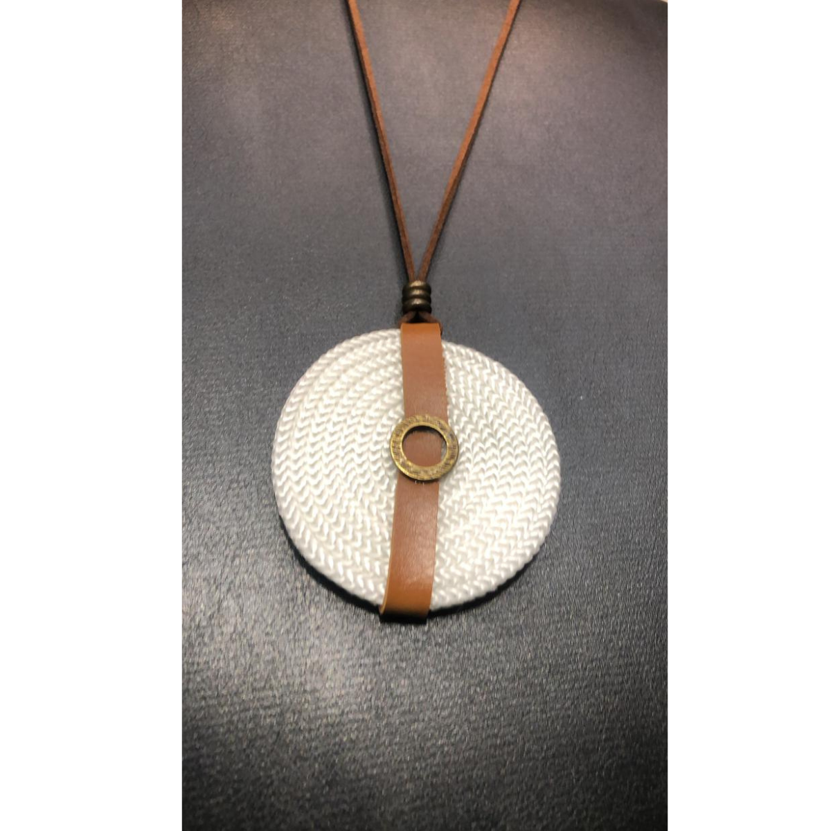 Colar Longo Ajustável em Couro Ecológico - Círculo Branco