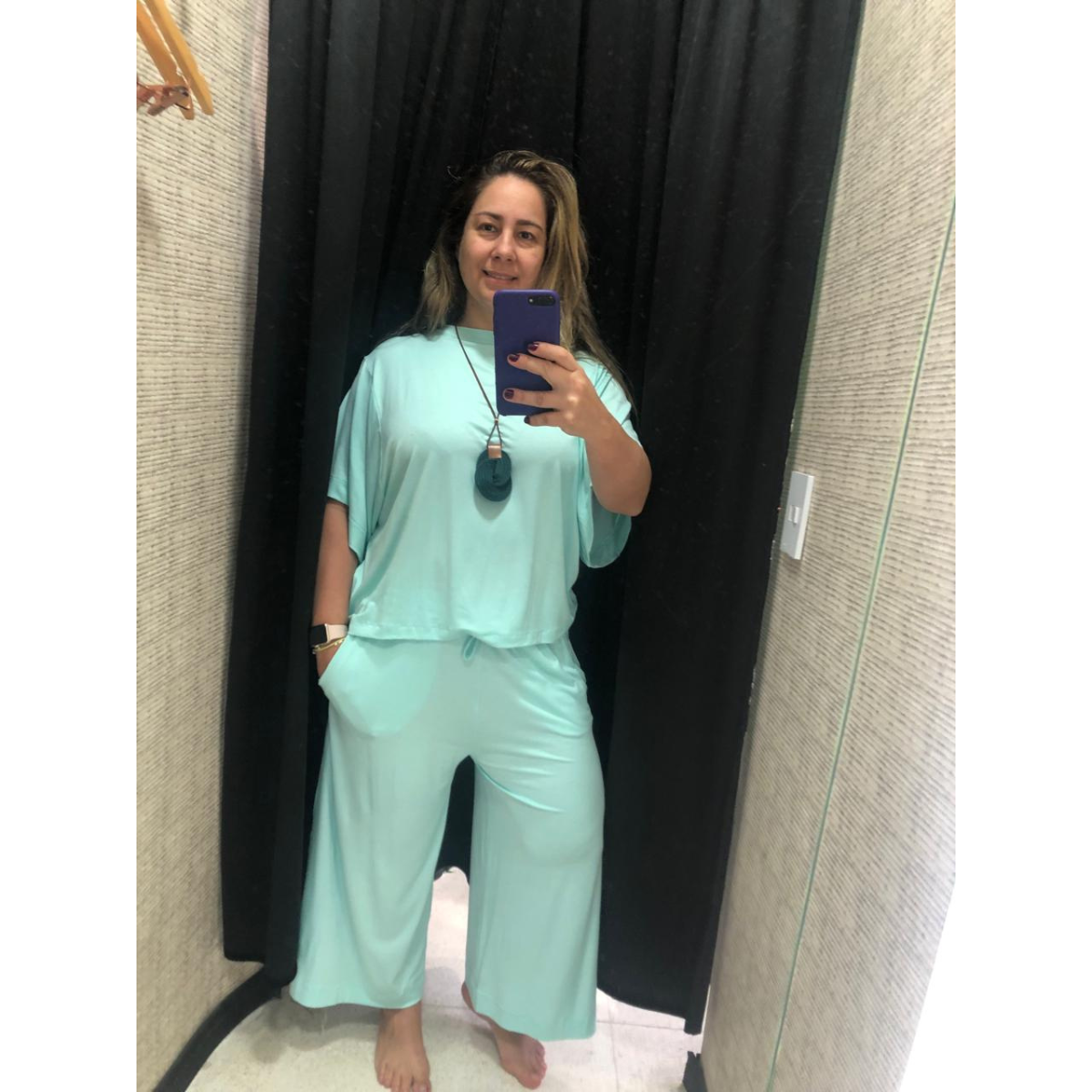 Este Conjunto de Blusa e Pantacourt em Viscolycra é uma escolha versátil e sofisticada que une praticidade e elegância em uma única peça